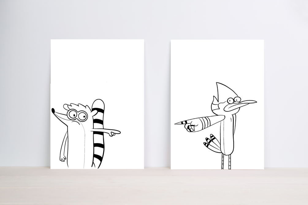 Two Pre-drawn Canvases depicting characters from Regular Show. Paint and brushes, not included.